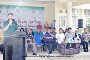Bupati dalam sambutannya mengucapkan terimakasih kepada Yayasan Server Indonesia yang mendistribusikan daging qurban di KSB. Bupati mengajak warga untuk bersyukur atas hadiah umat muslim di berbagai belahan dunia itu. Kepada warga yang graduasi dari keluarga penerima manfaat PKH menjadi keluarga mandiri, Bupati berterimakasih dan harus semangat melaksanakan usahanya agar semakin ditambah rizkinya oleh Allah SWT. ‘’Atas penerimaan daging ini, mari kita doakan keluarga muslim kita di belahan dunia lain, utamanya di Palestina, Syiria, Miyanmar dan lainnya,” kata Bupati.