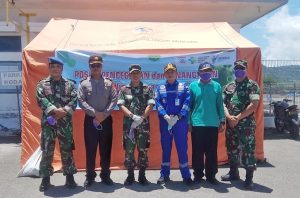 Selain itu, penyemprotan dilakukan juga oleh Danpos AL Benete, Peltu Pom Agung Suprijono, di sekitaran jalan masuk penumpang menuju Pelabuhan Benete.