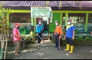 Turut hadir di dalam kegiatan penyemprotan Disinspektan anggota pengawas pemilu kecamatan seteluk, Amrullah yang kebetulan guru di MTsN 2 Sumbawa Barat. (cdn.wan)