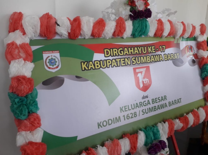 Pada kesempatan tersebut Dandim 1628/SB menyampaikan atas nama keluarga besar Kodim 1628/SB beserta Jajaran mengucapkan selamat hari lahir Kabupaten Sumbawa Barat Ke -17 semoga terus berkiprah maju mewujudkan kesejahtaan masyarakat Sumbawa Barat dengan berbagai Program Pembangunan yang direncanakan, sedang dan telah dilaksanakan.