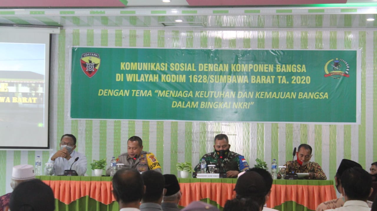 Sumbawa barat, CDN- Kodim 1628 Kabupaten Sumbawa Barat (KSB), terus memperkuat sinergitas lintas stakeholder melalui komunikasi sosial dengan tokoh masyarakat, tokoh agama, maupun tokoh adat sebagai salah satu cara meningkatkan tali silaturahiim, seperti yang terlihat dalam kegiatan komunikasi sosial dengan komponen bangsa di wilayah Kodim 1628 Kabupaten Sumbawa Barat tahun 2020, yang digelar di Kedai Sawah kompleks KTC, Rabu (16/12).