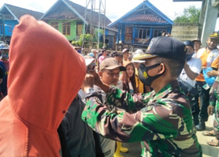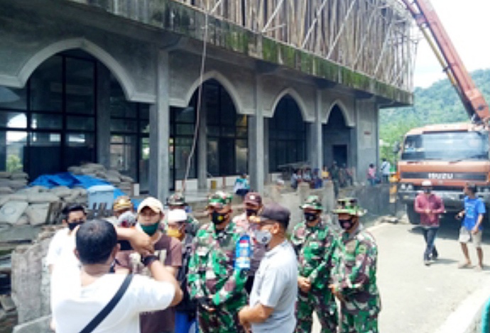 “Dengan harapan kita semua tetap dapat beraktifitas dan tetap aman dari penyebaran pandemi Covid-19, mengingat sampai saat ini kita masih dalam situasi bencana non alam wabah pandemi Covid-19, sebagai bentuk upaya, agar dapat segera keluar dari situasi sulit ini kembali kekehidupan normal seperti sebelumnya. Selain itu Kodim juga memberikan bantuan matrial pasir serta batu koral untuk proses pembangunan masjid tahap berikutnya”, ungkapnya.