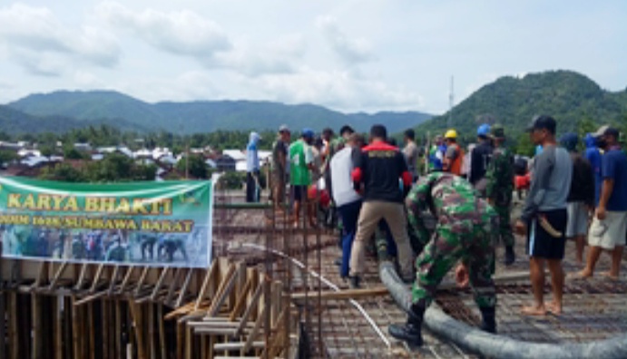 Menindak lanjuti hasil mediasi yang berbuah manis tersebut, Personil Kodim 1628/SB, Polres KSB dan Pihak PT. BBN bersama Masyarakat karya bakti bergotong royong mengecor atap masjid Ar – Rahman dengan bantuan matrial dari PT BBM, di Desa Tepas Sepakat Kecamatan Brang Rea KSB, Minggu (27/12/2020).