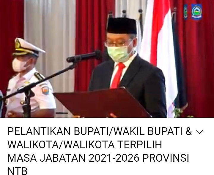 “Dalam sambutannya, Gubernur NTB melantik Bupati dan Wakil Bupati terpilih berdasarkan Surat Keputusan Menteri Dalam Negeri Republik Indonesia Nomor 131.52.369 tahun 2021 tanggal 25 Februari 2021. Gubernur membacakan naskah pelantikan yang berisikan ia sangat percaya bahwa para putra terbaik daerah ini akan melaksanakan tugas sebaik-baiknyanya.” Pungkas Abdul Muis.
