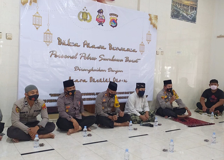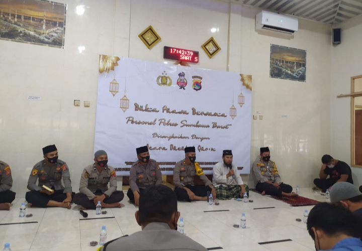 Sumbawa Barat CDN- Polres Sumbawa Barat menggelar buka bersama yang dirangkaikan dengan Nuzulul Qur’an dengan tema “Dengan Hikmah Ramadhan Kita Tingkatkan Iman dan Taqwa Melalui Pengamalan Moderasi Beragama Guna Mewujudkan Polri Yang Presisi”. Kegitan ini bertempat di Masjid Ar-Rahmatullah Polres Sumbawa Barat pada selasa (04/05/2021) pukul 17.30 Wita.