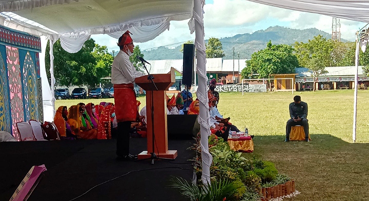 “Semuanya mengambil peran, sehingga saya teringat dengan pribahasa lama yakni berat sama dipikul, ringan sama dijinjing. Pribahasa itu memang sudah lama dan asing, tetapi denyutnya hingga saat ini masih sangat merangsang dan seksi,” candanya di samput tepuk tangan seluruh tamu undangan.
