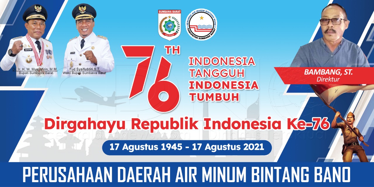 Iklan Iklan Ucapan Selamat HUT RI Ke-76 Dari Dirut PDAM Bintang Bano 1 min read Related Posts:Penuhi Kebutuhan Air Bersih BPBD KSB Salurkan Air…Disparpora KSB Telah Memiliki UPTD di Bendungan…Badrul Munir Ajak Masyarakat NTB Coblos Nomor Satu…Disparpora KSB Maksimalkan Potensi Wisata Bendungan…Kuatnya Dukungan Dari Tanah Kelahiran H. W…Musdes RKPDesa Lamunga Tahun 2025 Sukses Digelar Share Facebook Twitter Pinterest Linkedin