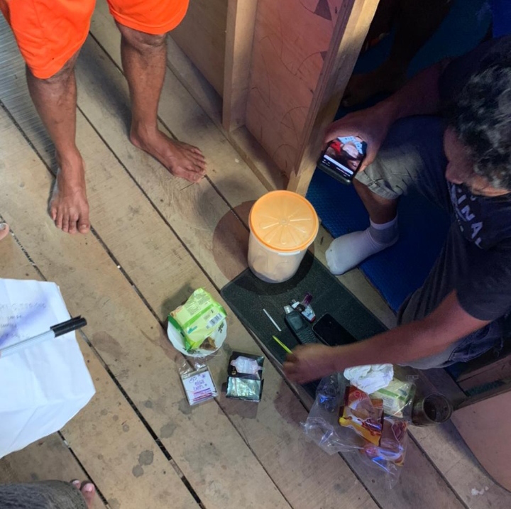 Lanjut Eddy, adapun barang bukti yang berhasil diamankan berupa 1 plastik klip yang berisi kristal putih yang diduga sabu dengan berat 0,50 gram. 1 Plastik klip yang berisi kristal putih yang di duga sabu dengan berat 0,42 gram, 1 buah piva kaca, 1 buah gunting, 1 buah pipet plastik, 1 dompet warna hitam, 1 dompet emas warna hitam merk hikmah, 1 dompet emas warna coklat merk cahaya antik, 1 Hp merk nokia warna hitam, 1 Hp merk Oppo A15 warna biru, 2 buah bungkusan rokok dji sam soe warna hitam, 3 jarim sumbu, 3 buah jarum timbangan, 3 buah bong lengkap dengan pipet, 5 korek api gas, 6 buah pipet plastik ujungnya runcing, 7 bendel plastik klip, 25 bekas poketan sabu dan uang tunai Rp. 5.550.000 ( lima juta lima ratus lima puluh ribu rupiah)