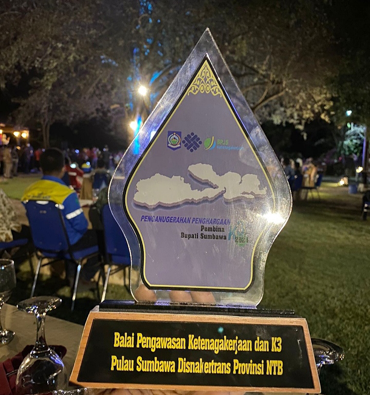 “Ini adalah capaian luar biasa dan pertama kali diselenggarakan oleh Balai Pengawasan Ketenagakerjaan dan K3 Pulau Sumbawa Disnakertrans Provinsi NTB. Alhamdulillah, Bupati Sumbawa Barat dianugrahi sebagai pembina terbaik dalam K3. Tentunya Balai Pengawasan Ketenagakerjaan dan K3 Pulau Sumbawa Disnakertrans Provinsi NTB memiliki standar dan penilaian khusus sehingga penghargaan tersebut diberikan pada Bupati Sumbawa Barat,” pungkas Ir. Abdul Muis. MM.