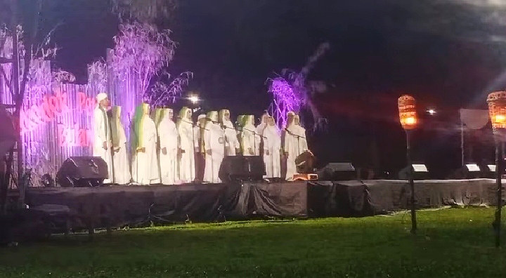 CDN, Sumbawa Barat– Alunan Shalawat dari paduan suara Dharma Wanita Kecamatan Seteluk Mengalun indah di pelataran masjid agung pada Kamis malam (18/11/2021).