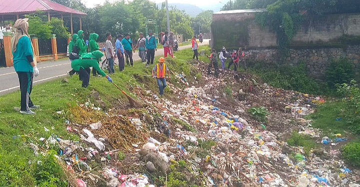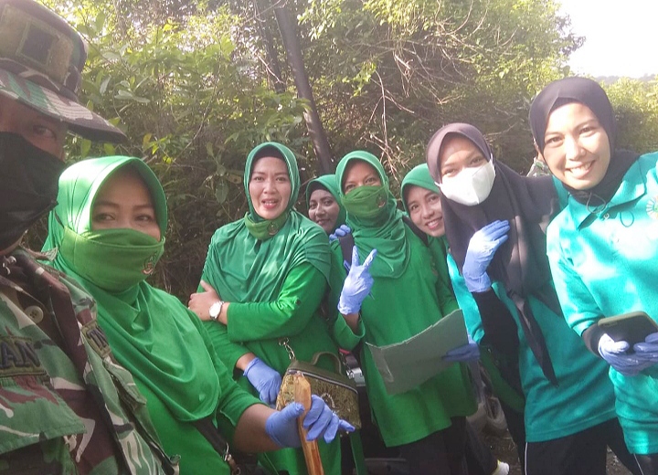 Bersama pemerintah desa dan masyarakat setempat, personil Koramil 1628-02/Sekongkang dan ibu-ibu Persit menelusuri lokasi-lokasi yang dipenuhi sampah.