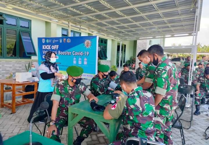 “Mengutip apa yang disampaikan Dirjen Pencegahan dan Pengendalian Penyakit dr. Maxi Rein Rondonuwu mengatakan bahwa hasil studi menunjukkan telah terjadi penurunan antibodi pada 6 bulan setelah mendapatkan vaksinasi COVID-19 dosis primer lengkap, sehingga dibutuhkan pemberian dosis lanjutan atau booster untuk meningkatkan proteksi individu terutama pada kelompok masyarakat rentan”, ungkap Kasdim.
