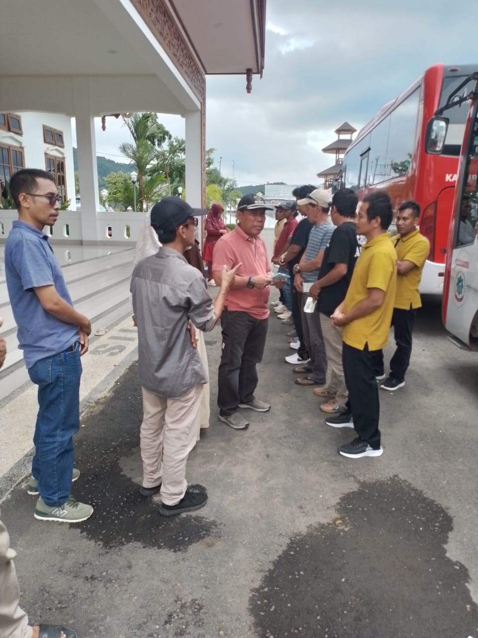 Bupati didampingi oleh Kepala Dinas Pendidikan dan Kebudayaan Kabupaten Sumbawa Barat, Khusnarti, S.Pd., M.M. Inov di Pendopo Bupati melakukan pengecekan unit armada bus dan melakukan interaksi langsung dengan para supir bus sekolah.