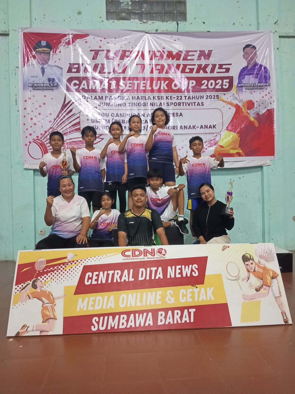 CDN, Seteluk– Sponsor Utama PB Meraran Junior, Central Dita News tetap memberikan bonus pada seluruh atlet badminton PB Meraran Junior walau di partai final mereka kalah 4-1 atas PB Rempe Junior.
